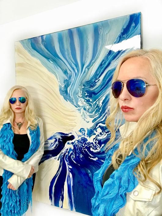 Identical twin artists Heidel-Briana and Raya create stunning reflective large one of a kind paintings with rare pigments from around the world. Using unique materials and complex layering their pieces take on a life of their own.
